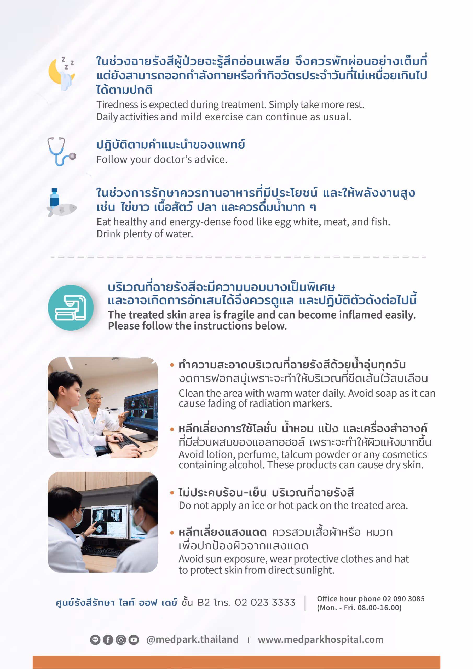- Tiredness is expected during treatment. Simply take more rest. Daily activities and mild exercise can continue as usual.