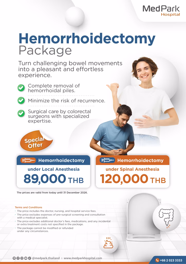 Hemorrhoidectomy Package with Local Anesthesia: 89,000 THB