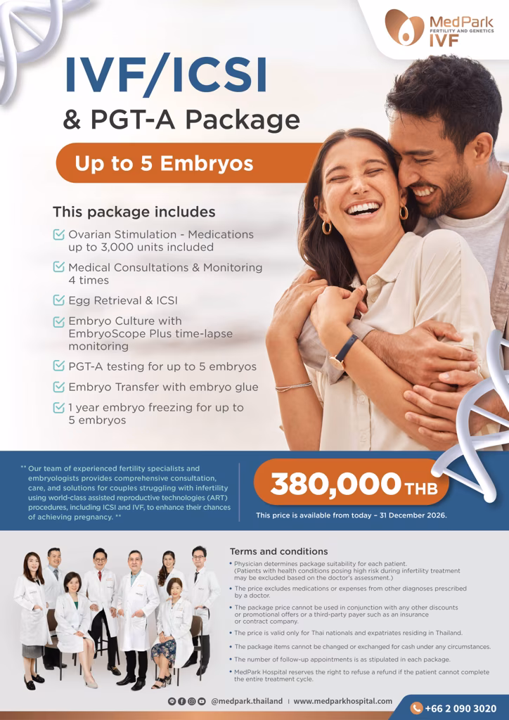 • แพ็กเกจ IVF/ICSI และตรวจโครโมโซมตัวอ่อน 5 ตัว-IVF/ICSI and PGT-A 5 embryos package