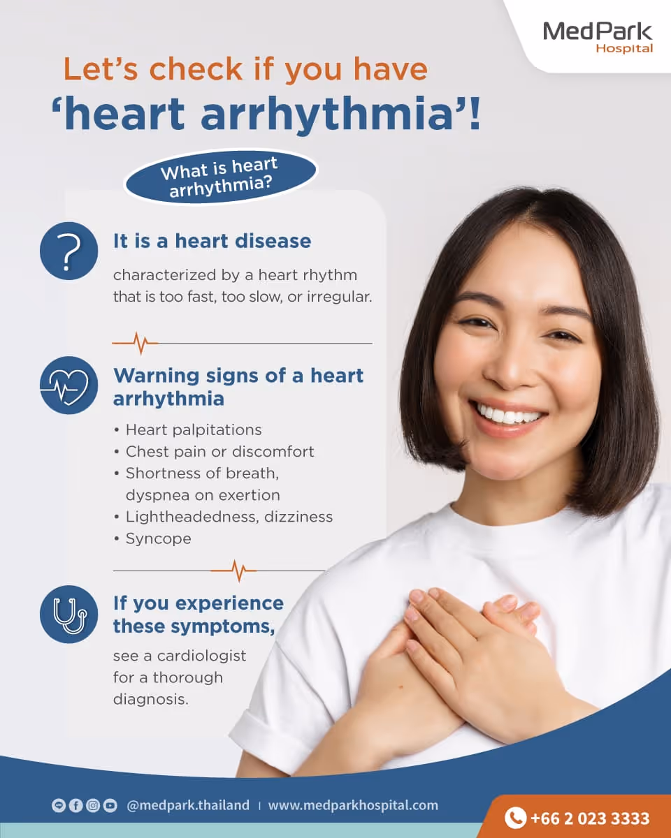 Heart Arrhythmias is when the heart beats too fast, too slow, or irregularly. The symptoms include:- Heart palpitations