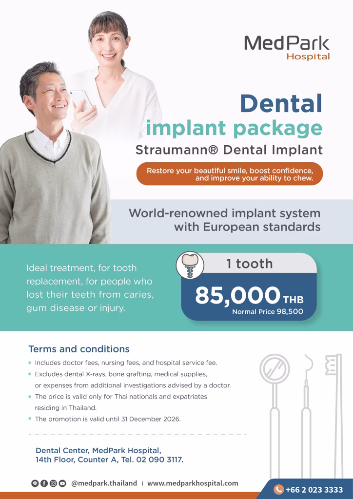 - For your convenience, please make an appointment in advance at Dental Center, 14 Floor, Counter A, 02-090-3117.