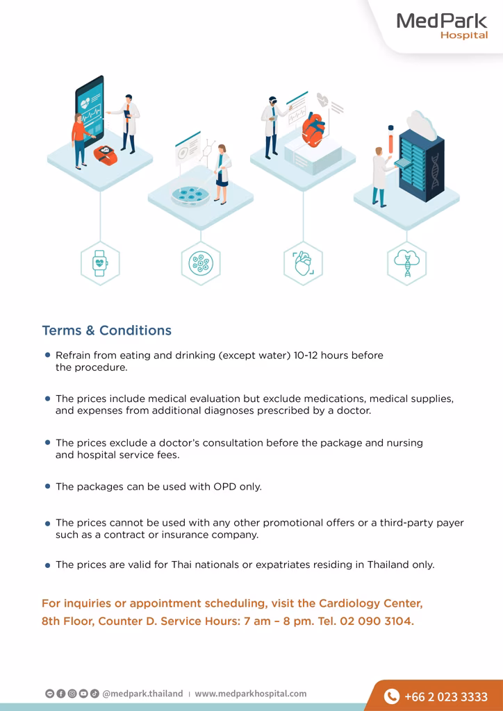- このパッケージは、外来(OPD)のみで使用できます。心臓病センターでの予約が必要です。