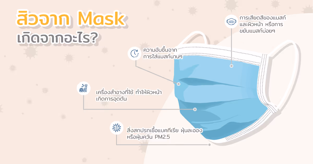 อธิบายกลไกการเกิดสิวที่มาจากหน้ากากอนามัย จะคล้ายกับในกลุ่มนักกีฬาบางชนิดที่ต้องสวมหมวก หรือสังเกตคนขับรถมอเตอร์ไซด์ที่ใส่หมวกกันน๊อค จะเกิดสิวบริเวณหน้าผาก หรือสายรัดคาง บริเวณที่เสียดสีนั่นเอง เนื่องจากเวลาที่ใส่หน้ากากอนามัยนั้น แมสก์จะติดสัมผัสกับผิวหน้าเรา เหมือนเกราะที่ปิดกั้นการระเหยของเหงื่อและน้ำมันที่สร้างจากผิวของเรา รวมทั้งอาจมีน้ำลายที่มาติดที่แมสก์ จากการพูดหรือจามด้วย ไปกระตุ้นให้เกิดการอุดตันของรูขุมขน และทำให้เกิดสิวขึ้น