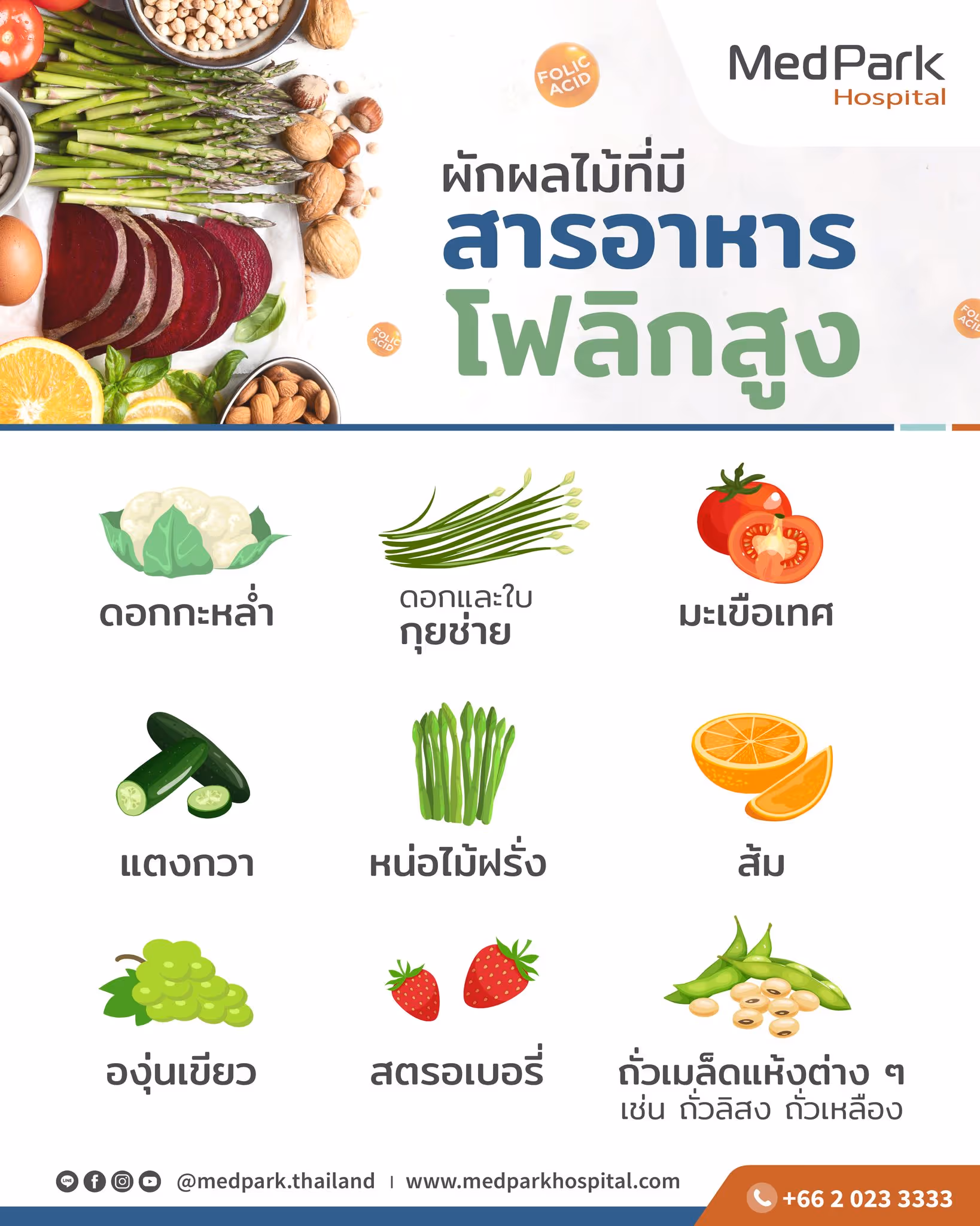 โฟลิกเป็นสารอาหารที่มีมากในผักผลไม้สด เช่น