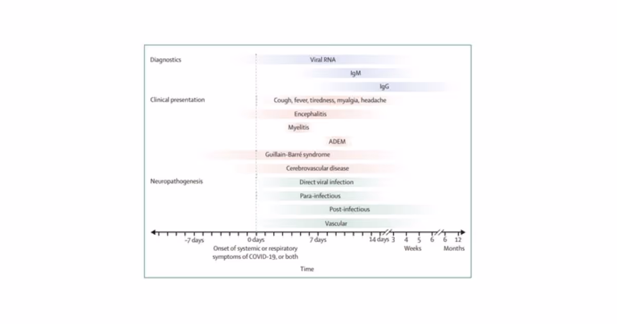 (รูปภาพมาจาก Ellul MA, Benjamin L, Singh B, Lant S, Michael BD, Easton A, et al. Neurological associations of COVID-19. The Lancet Neurology. 2020 Sep;19(9):767-83.)