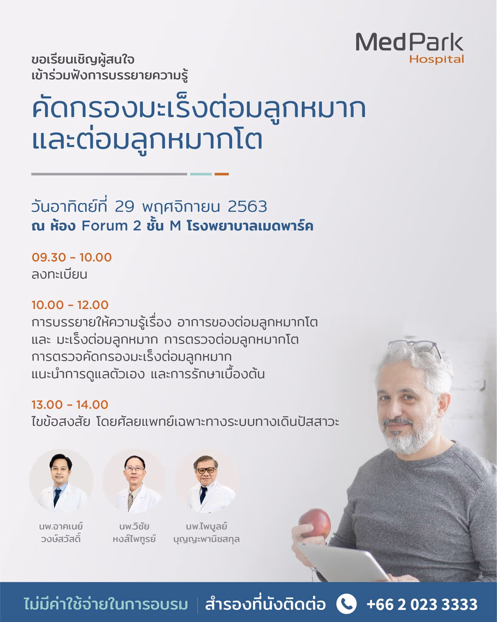 โรงพยาบาลเมดพาร์ค ขอเชิญผู้สนใจเข้าร่วมฟังบรรยาย "การคัดกรองมะเร็งต่อมลูกหมาก"