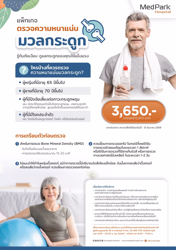 - ราคาดังกล่าวไม่รวมค่ายาและค่าใช้จ่ายที่อาจจะเกิดขึ้น ในกรณีที่แพทย์แนะนำให้มีการตรวจเพิ่มเติม หากพบว่ามีความผิดปกติ