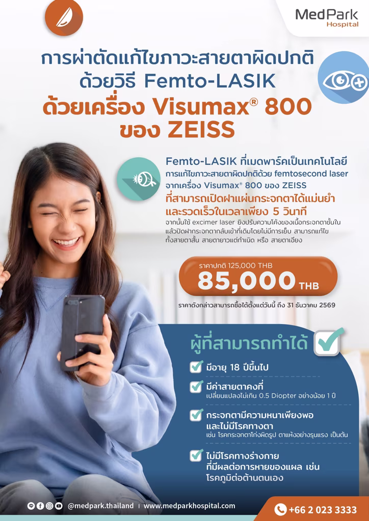 โปรแกรมผ่าตัดแก้ไขภาวะสายตาผิดปกติด้วยวิธี Femto LASIK