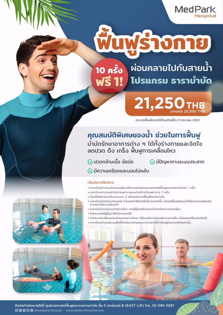 - การออกกำลังกายในน้ำ – ฟื้นฟูการเคลื่อนไหวและเสริมความแข็งแรง