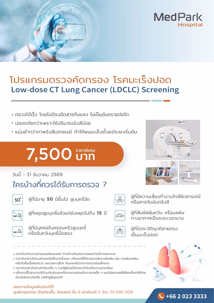 แพ็กเกจคัดกรองโรคมะเร็งปอด Low-Dose CT Lung Cancer (LDCLC)
