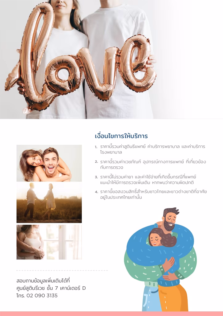 - ราคานี้ไม่รวมค่ายา และค่าใช้จ่ายที่เกิดขึ้นกรณีที่แพทย์แนะนำให้มีการตรวจเพิ่มเติม หากพบว่าความผิดปกติ
