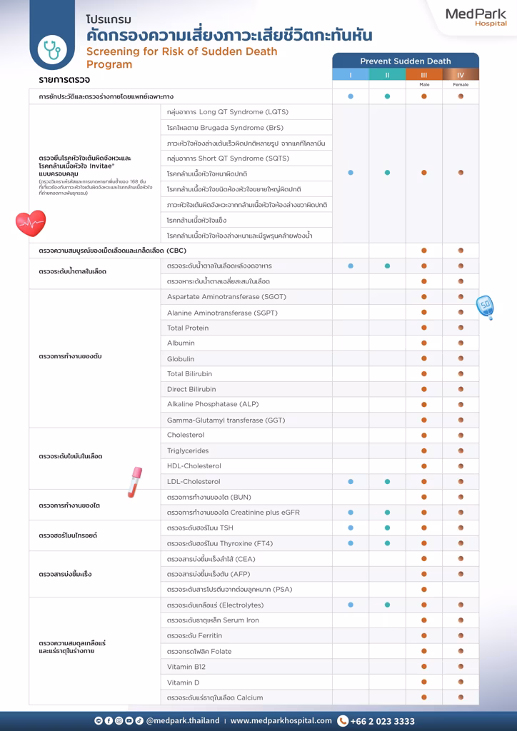 โปรแกรมคัดกรองความเสี่ยงภาวะเสียชีวิตกะทันหัน (Screening for Risk of Sudden Death Program)ราคาเริ่มต้น 169,990 บาท (จากราคาปกติ 288,270 บาท)