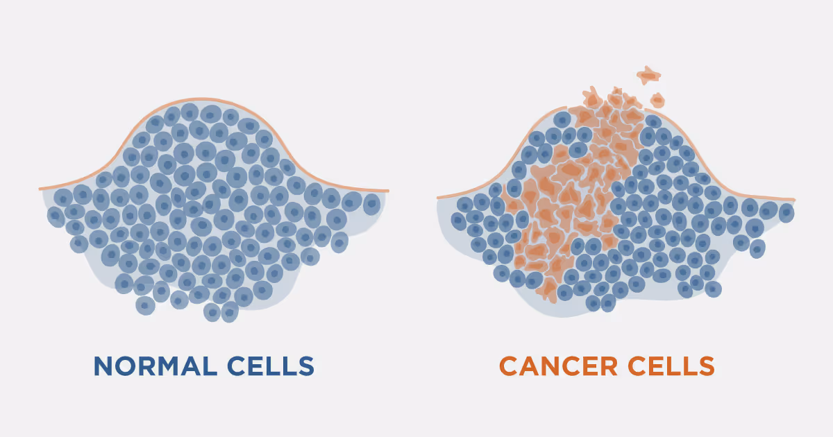 Usually, normal cells in the body grow and divide to form new cells replacing the old, damaged, and dying cells. If the cell division process is not regulated and the mutated cells multiply rapidly, abnormal lumps of tissues or tumors are formed. The tumorous growths may be benign or malignant.